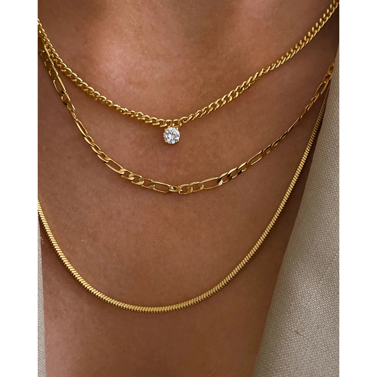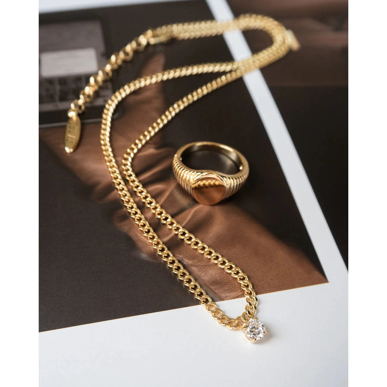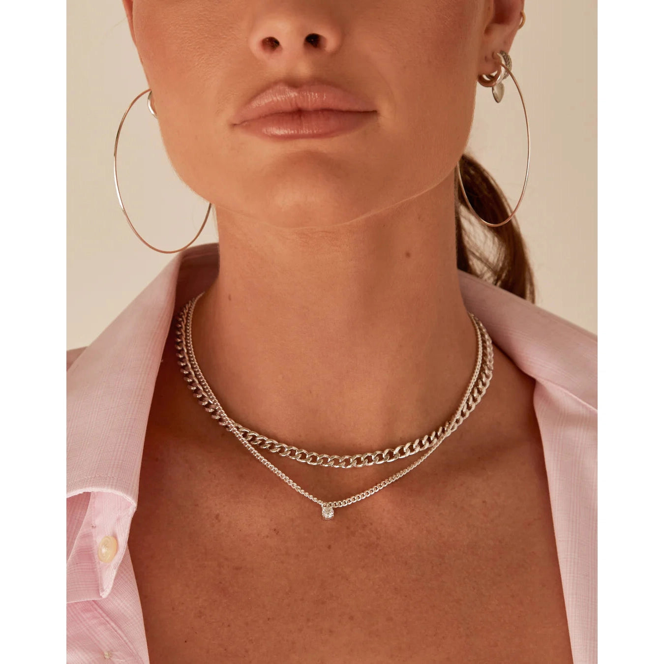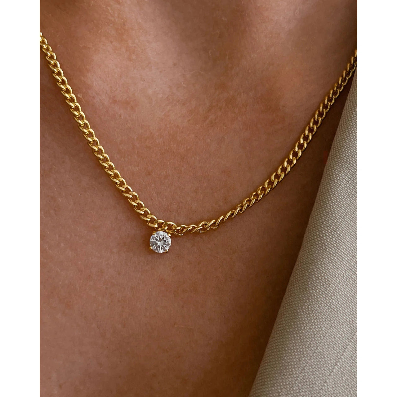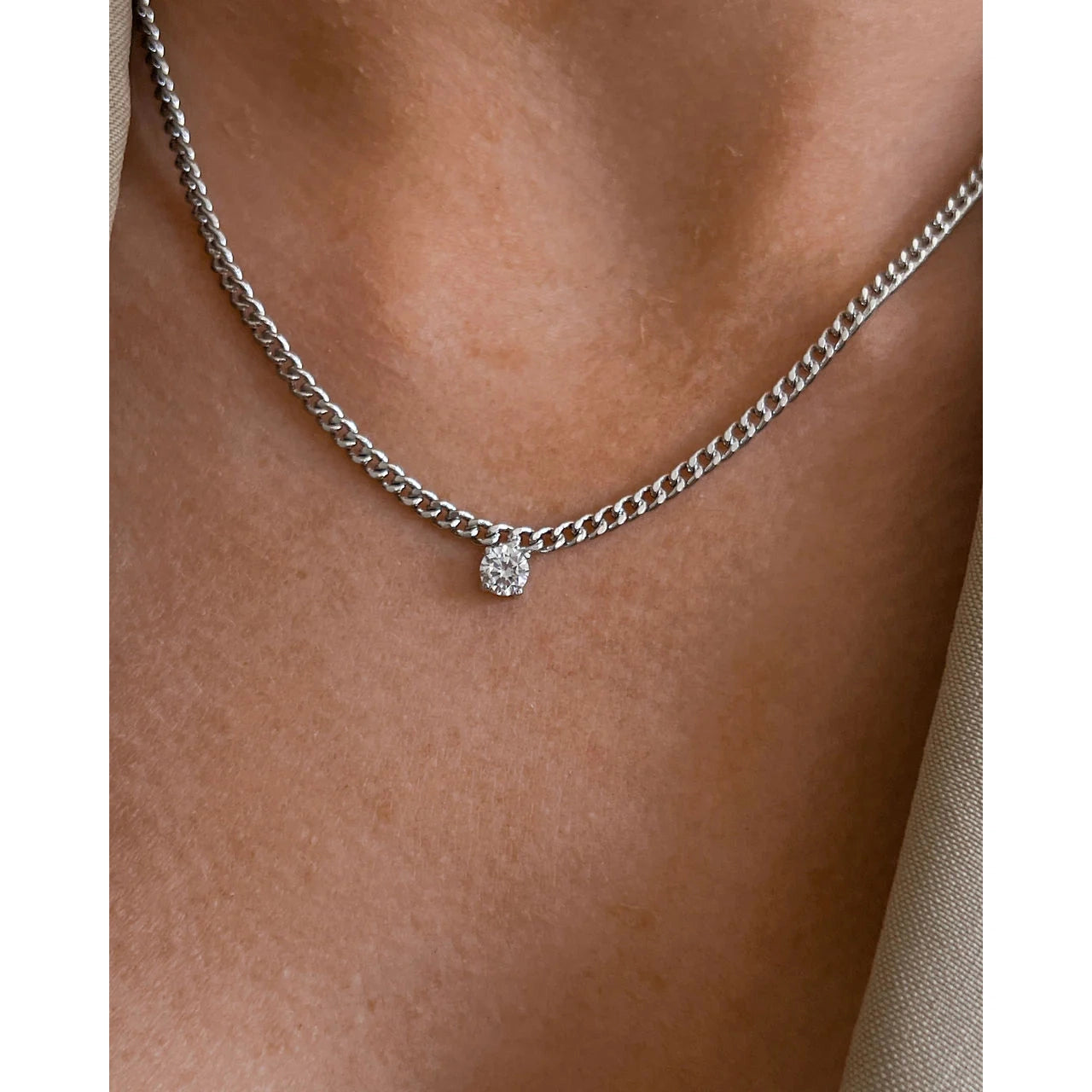 Curb chain necklace with a round CZ stud charm