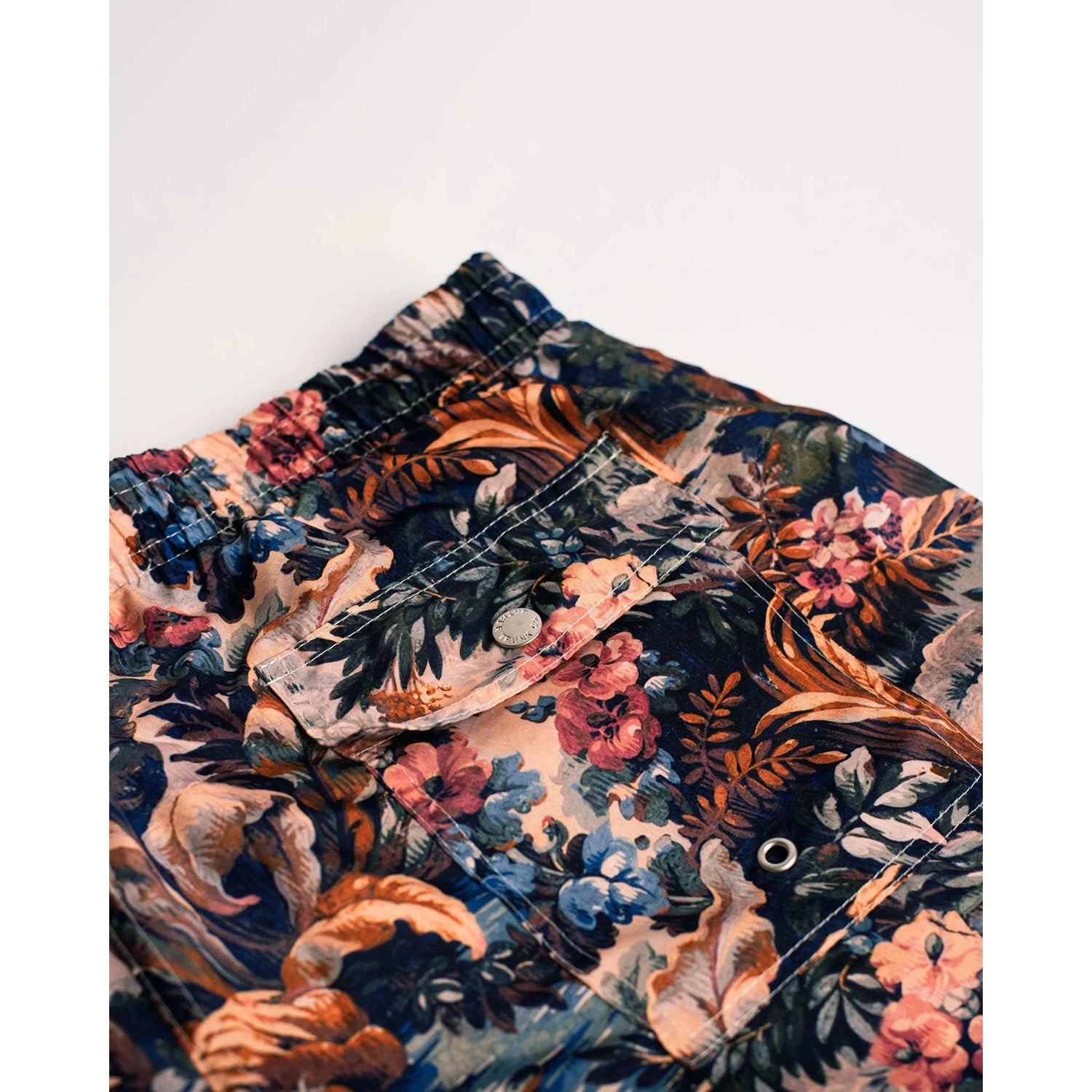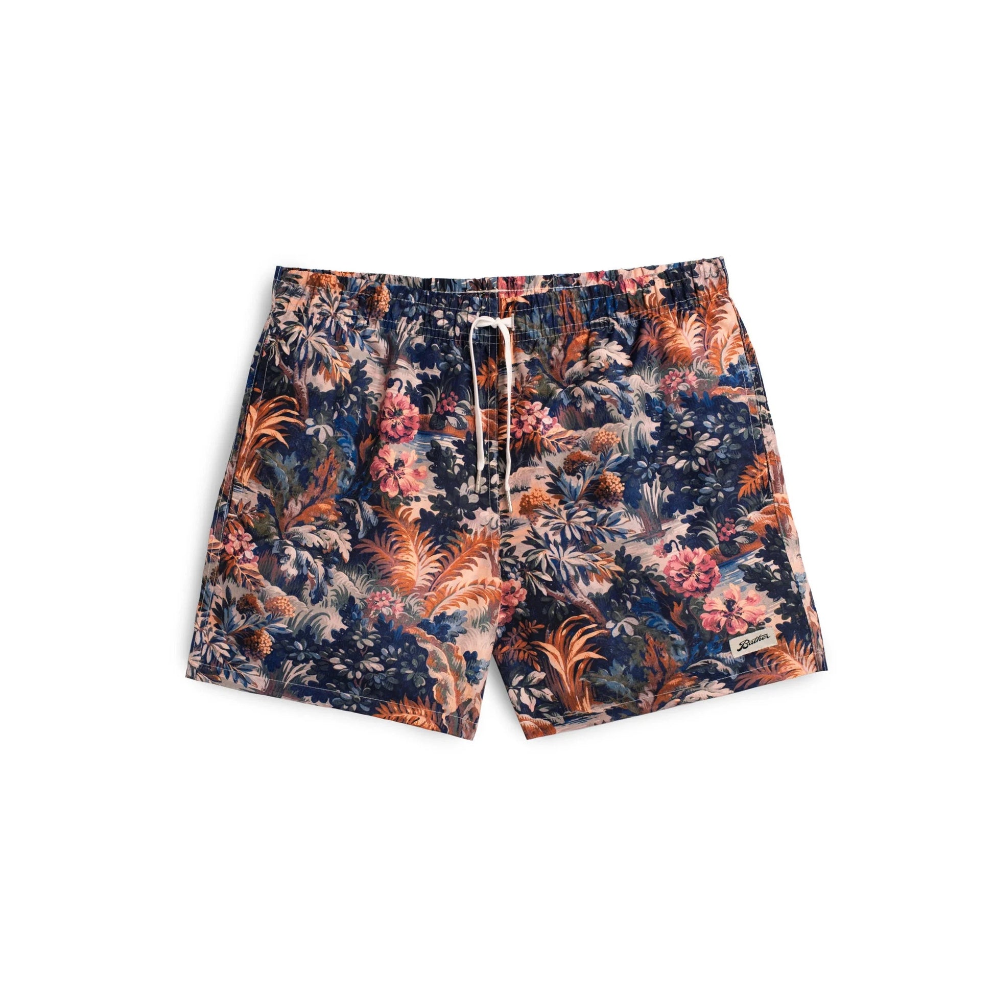 The signature Swim Trunk features an elasticized waist with an ultra fine, four-way stretch mesh lining, quick-dry shell, custom-tipped drawstrings and back pocket snap enclosure. Fits true to size.