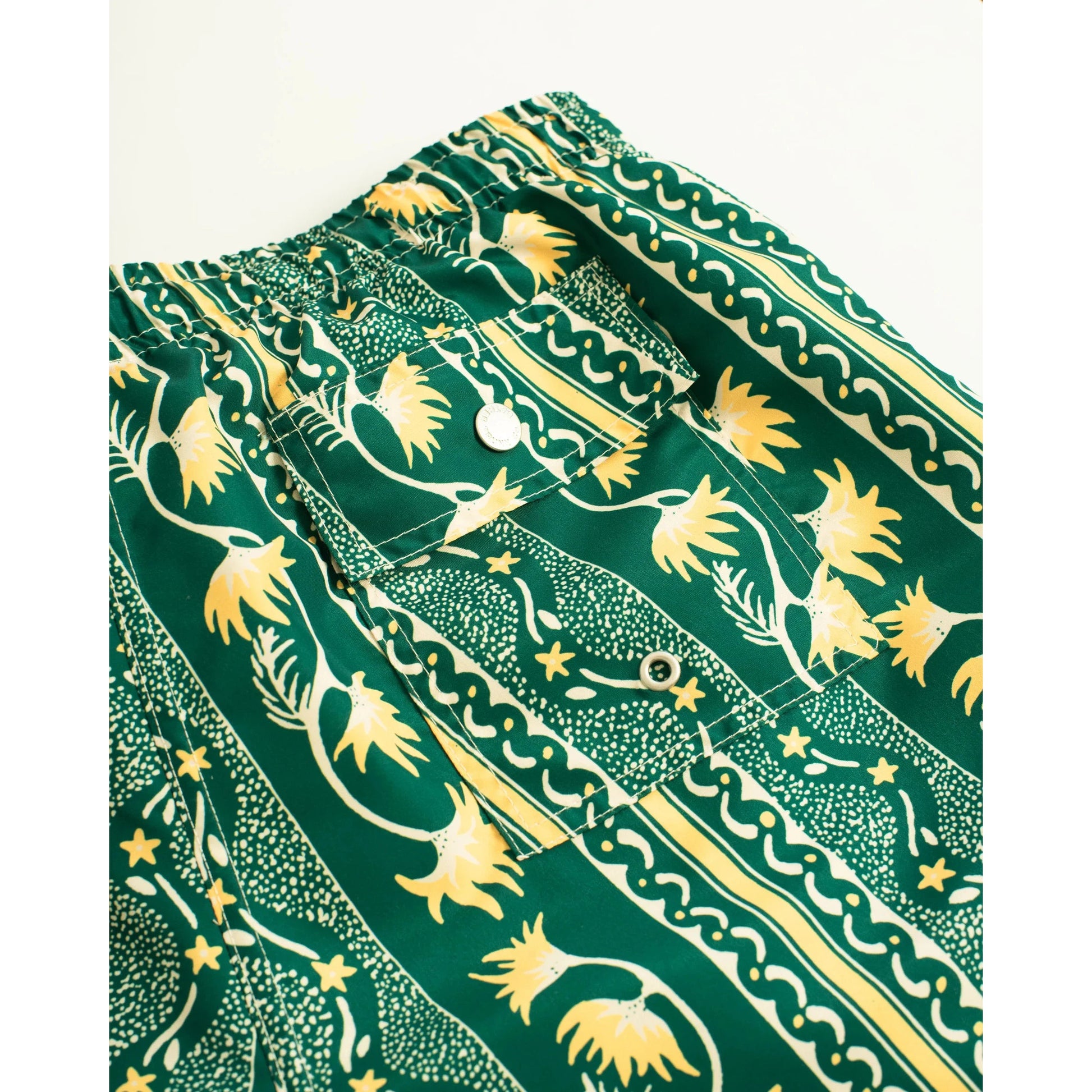 This beachy play on the classic stripe features intricate mosaics of flowers, sand, and starfish. All things we love dearly.