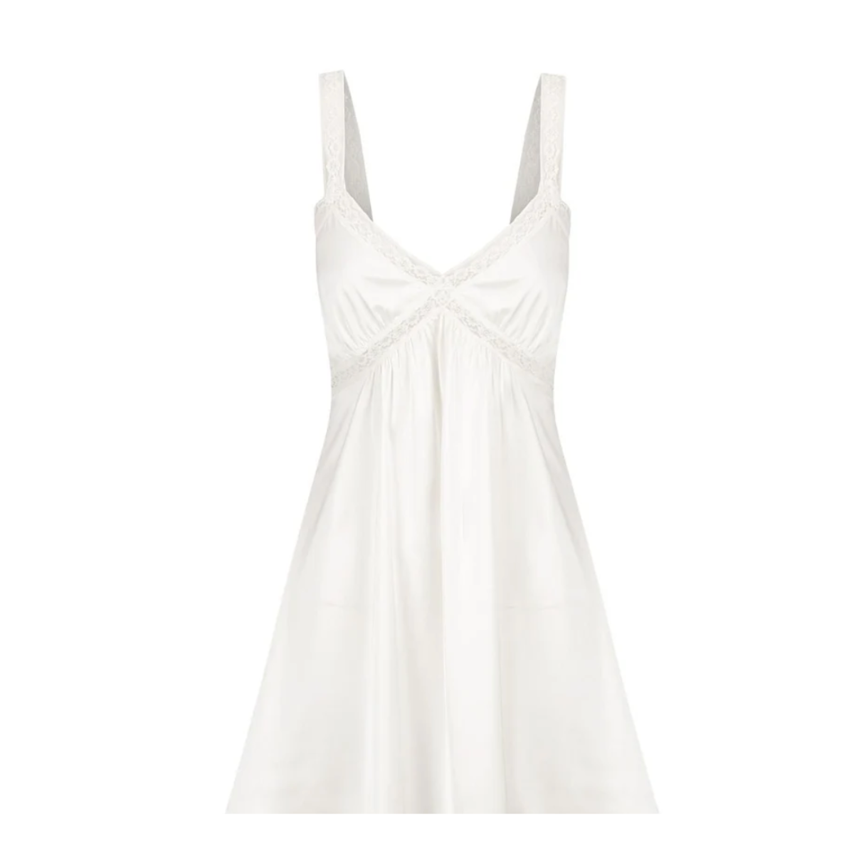 The Capri Slip is crafted in buttery soft satin with dainty lace trim and a gathered bust.