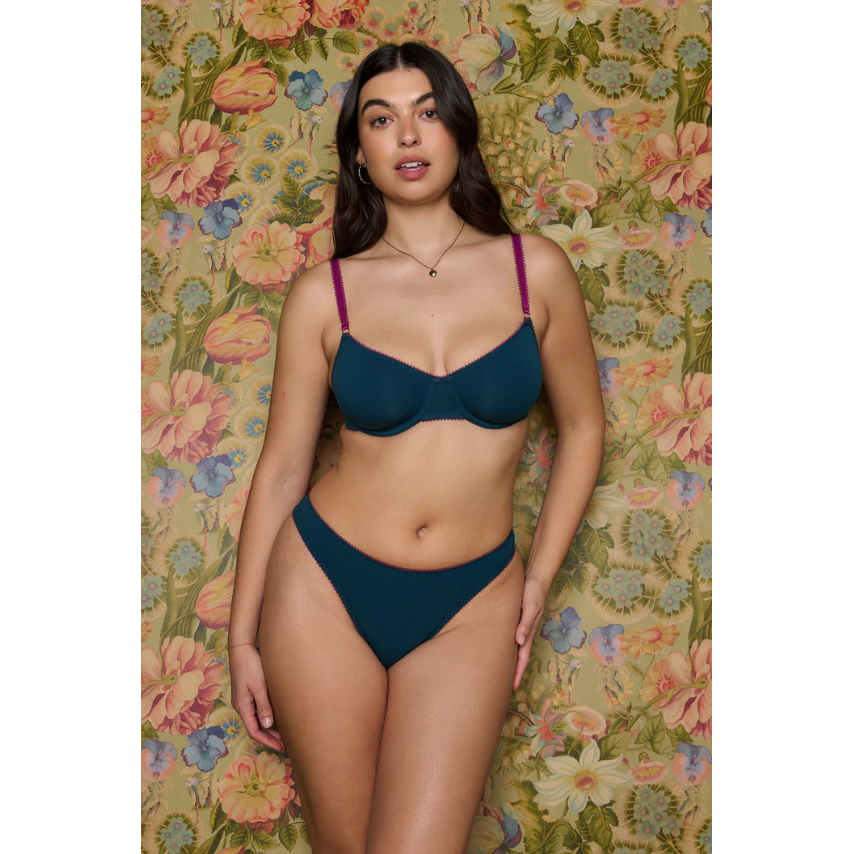 Cool, comfortable and colourful, meet the Freda Organic Cotton Thong. Cut with clean lines and a zig-zag stitch edge, she’s the staple your lingerie drawer needs.
