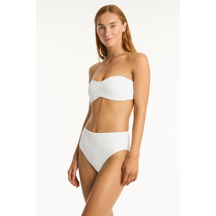 The mood is soft and dreamy, a tribute to long afternoons in the sun, nostalgic and carefree. Interlace is made using a fine microfibre cut work broderie anglaise design. Superior lycra content allows for a refined and minimalistic fit and finish. Dynamic cuts and supreme body-shaping combine with clever panelling and contemporary details for the ultimate confidence pieces.