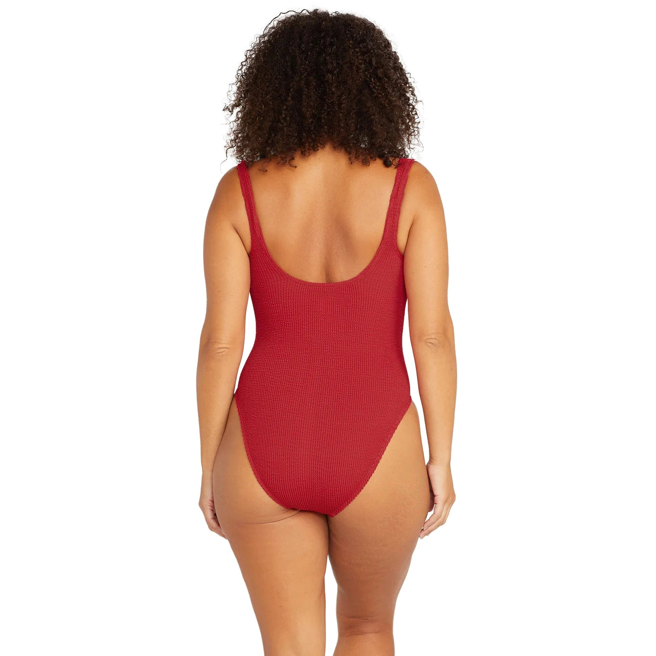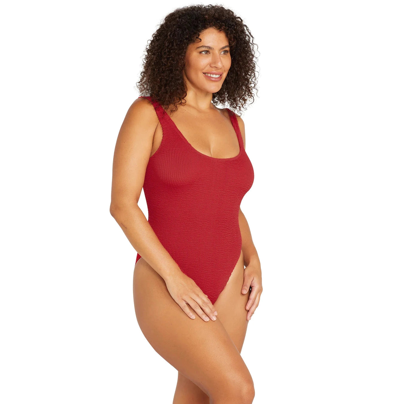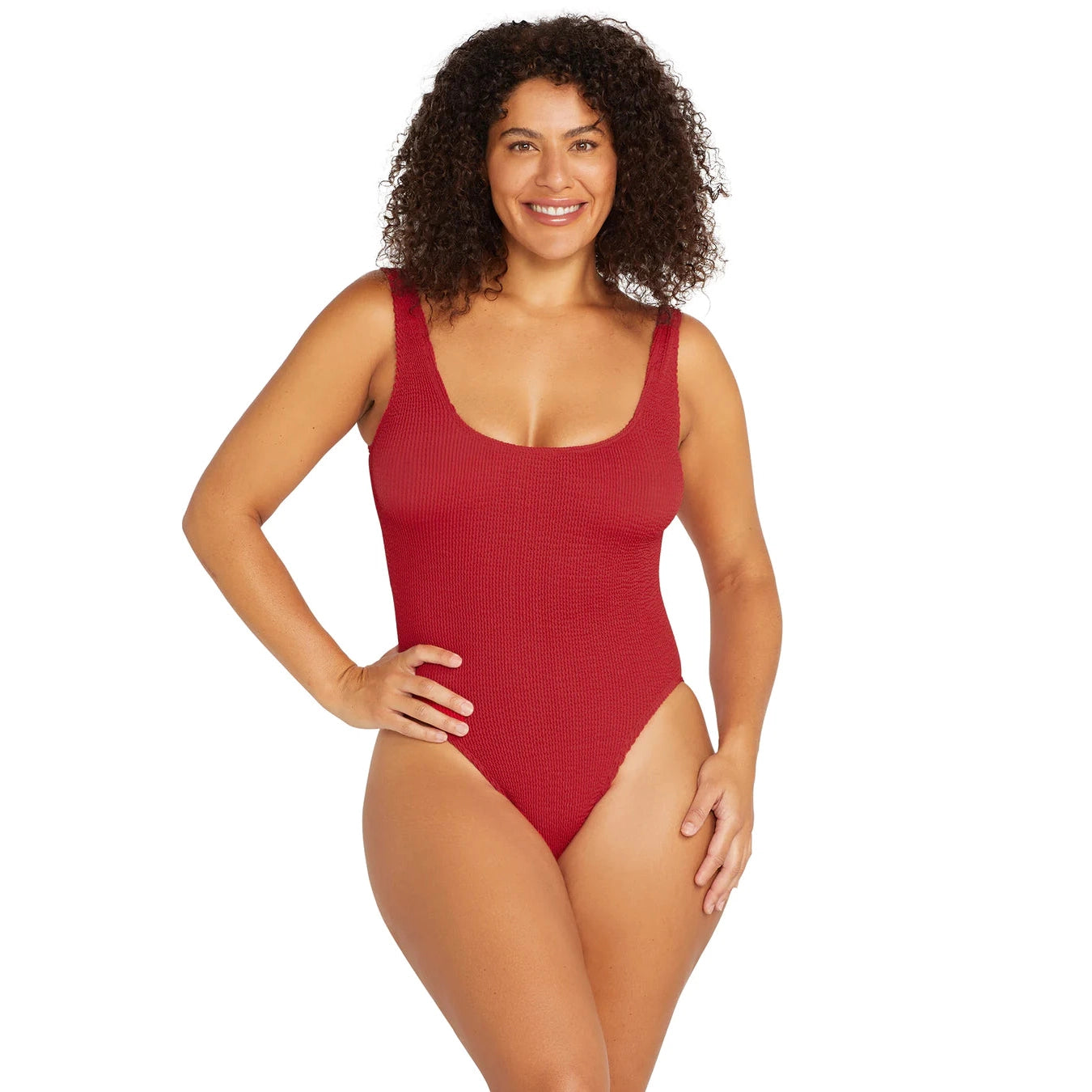 The Kahlo is everything. This curve-fit one-piece is made from sustainable crinkle fabric with high-cut legs and thick supportive straps. This one-piece fits A-G Cup and is 100% wire-free yet still supportive.