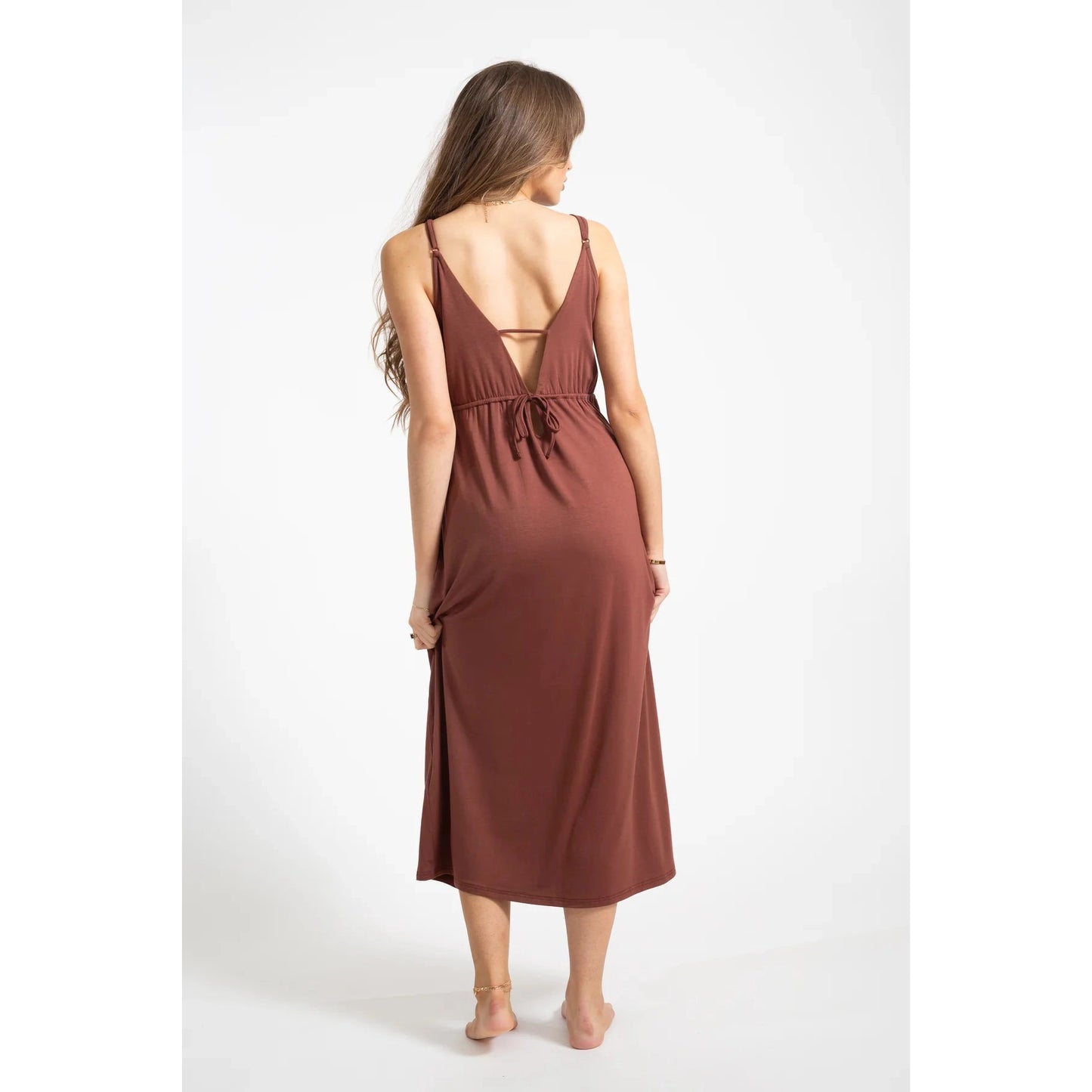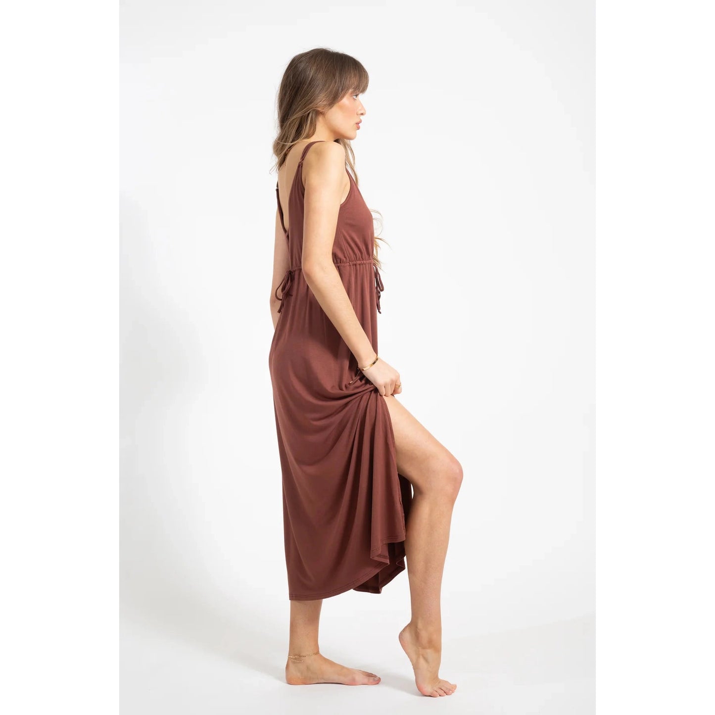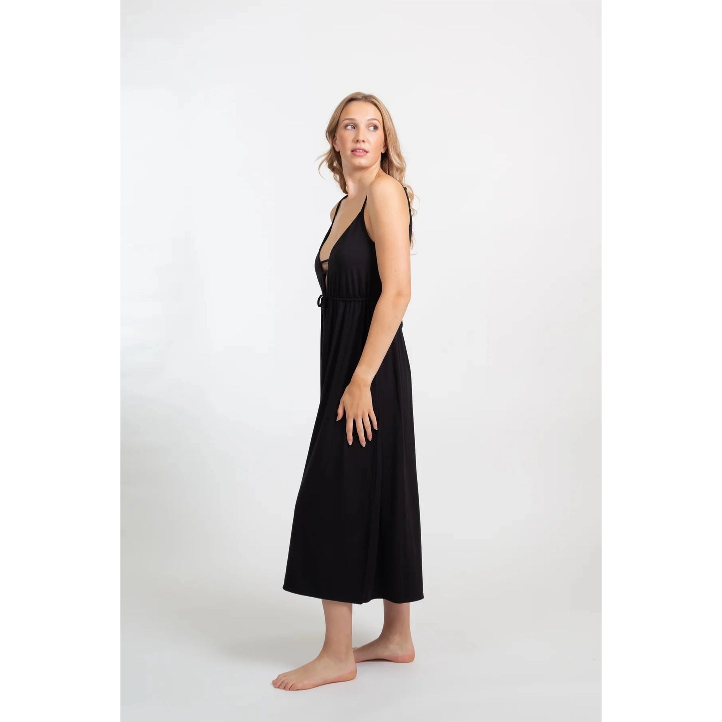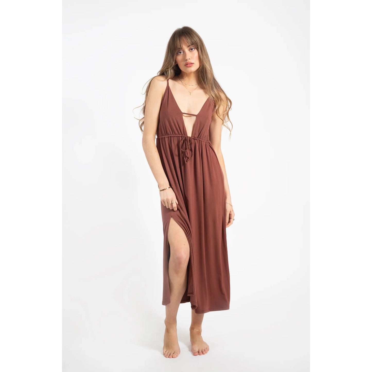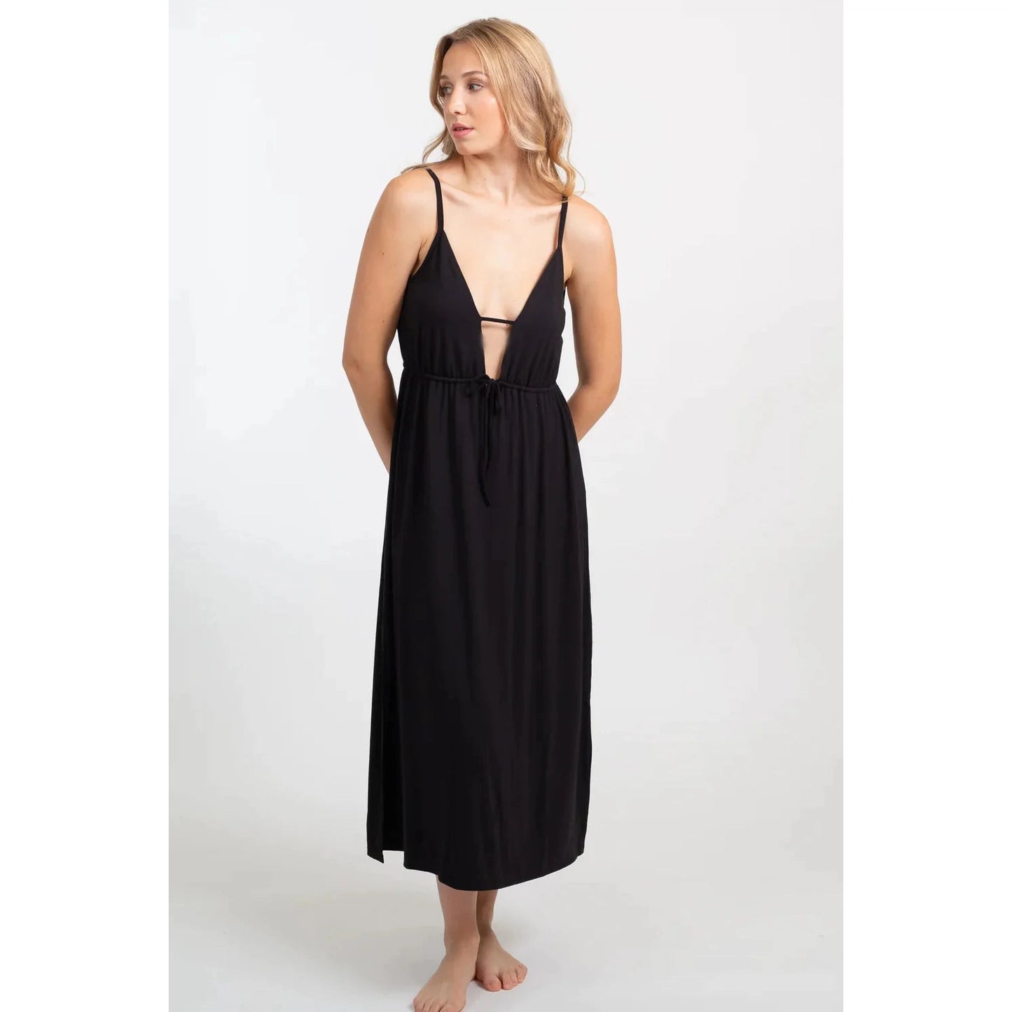 This strappy deep-v neck dress is made from a signature soft and stretchy fabric to provide you with the most comfortable yet flattering look. It's fun, sexy, and flirty with its cinched waist and side slit. For the babe who is always up for a happy hour by the beach or pool - this is the dress of your dreams!