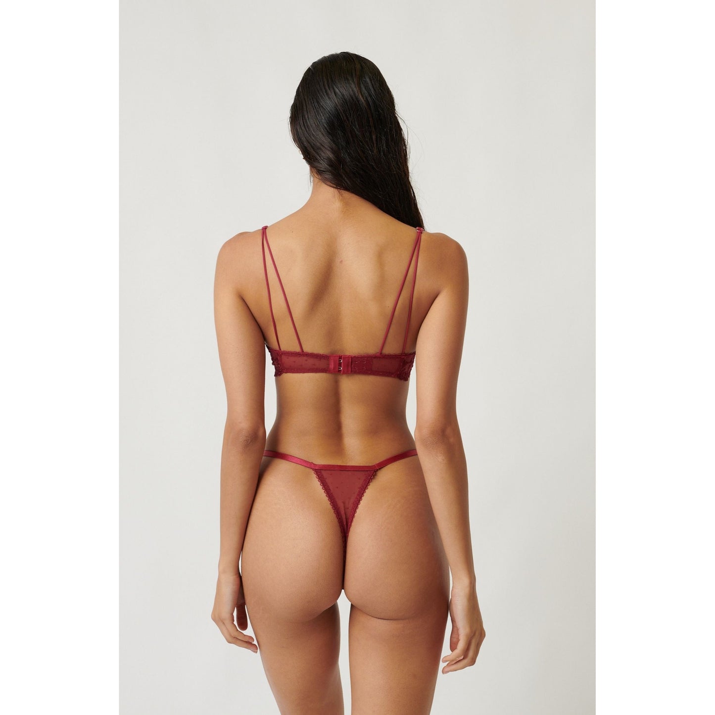 The Nicolette Underwire is the perfect balance of dainty and sophisticated. With intricate woven tulle lace cups and double strap details at the back. Exposed satin underwire casing makes this piece truly something special.