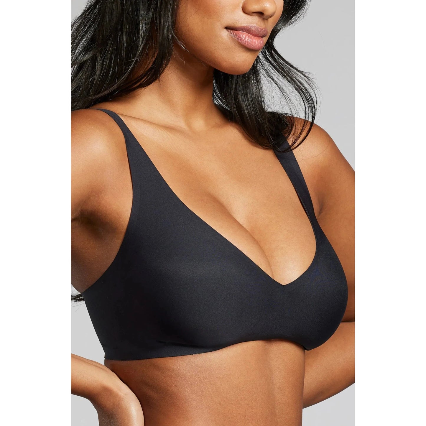 A semi-sheer, non-padded wireless bra featuring strategically placed bonding under bust to help shape and support without wires. Wider straps and sides lay flat against the skin keeping things looking smooth. Made from a buttery soft No-Show fabric that fits like a second skin.