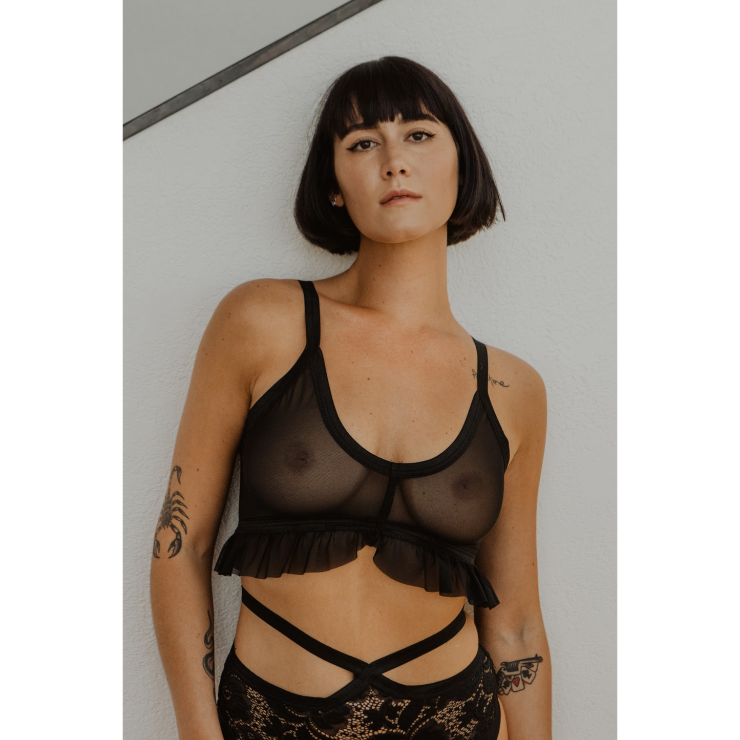 The Ruff Cut Bralette. With a longer line design, this high comfort piece is flexible for daily wear and lounging, with the undulating 360-degree ruffle that gives off romantic beauty.
