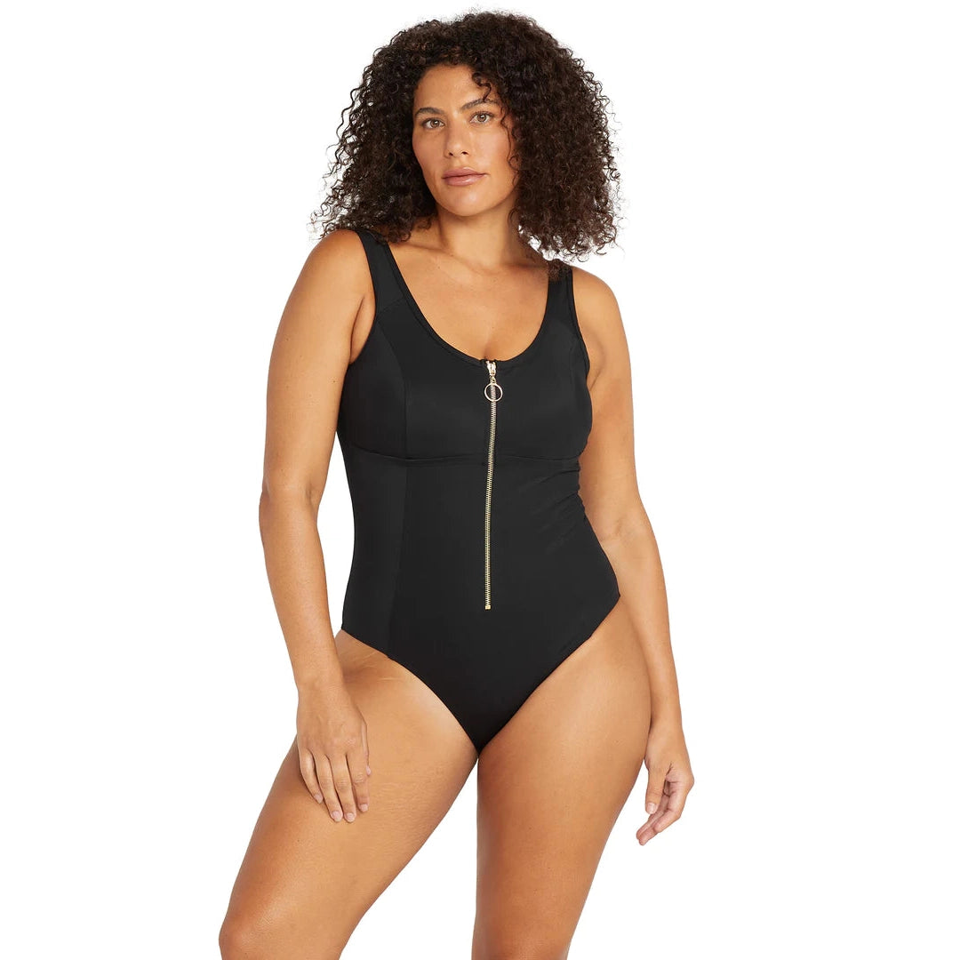 Feel more confident and more support in the Sculpt Control Zip One Piece. This suit is designed to enhance your shape with a sculpting effect. Crafted with a front gold zip detail and wide shoulder straps for extra comfort and support.