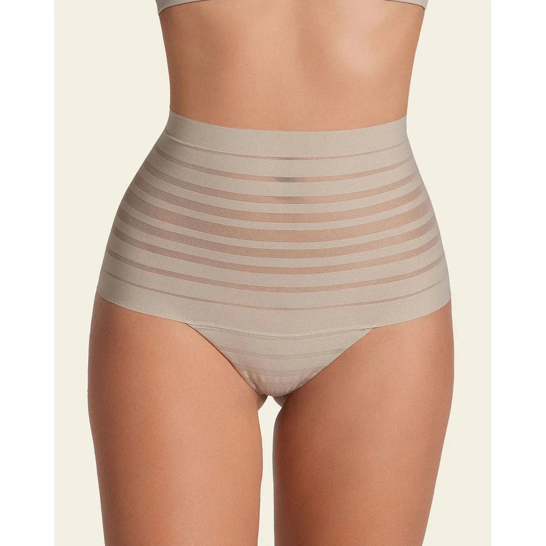 Slimming Lace Stripe High-Waisted Thong Panty