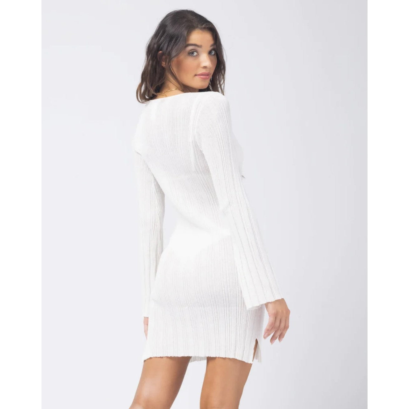 Who says you can’t still turn heads when you’re covered up? With its mini dress silhouette and side slits, the Wailea Dress features subtle bell sleeves and a keyhole accented with a tortoiseshell ring.