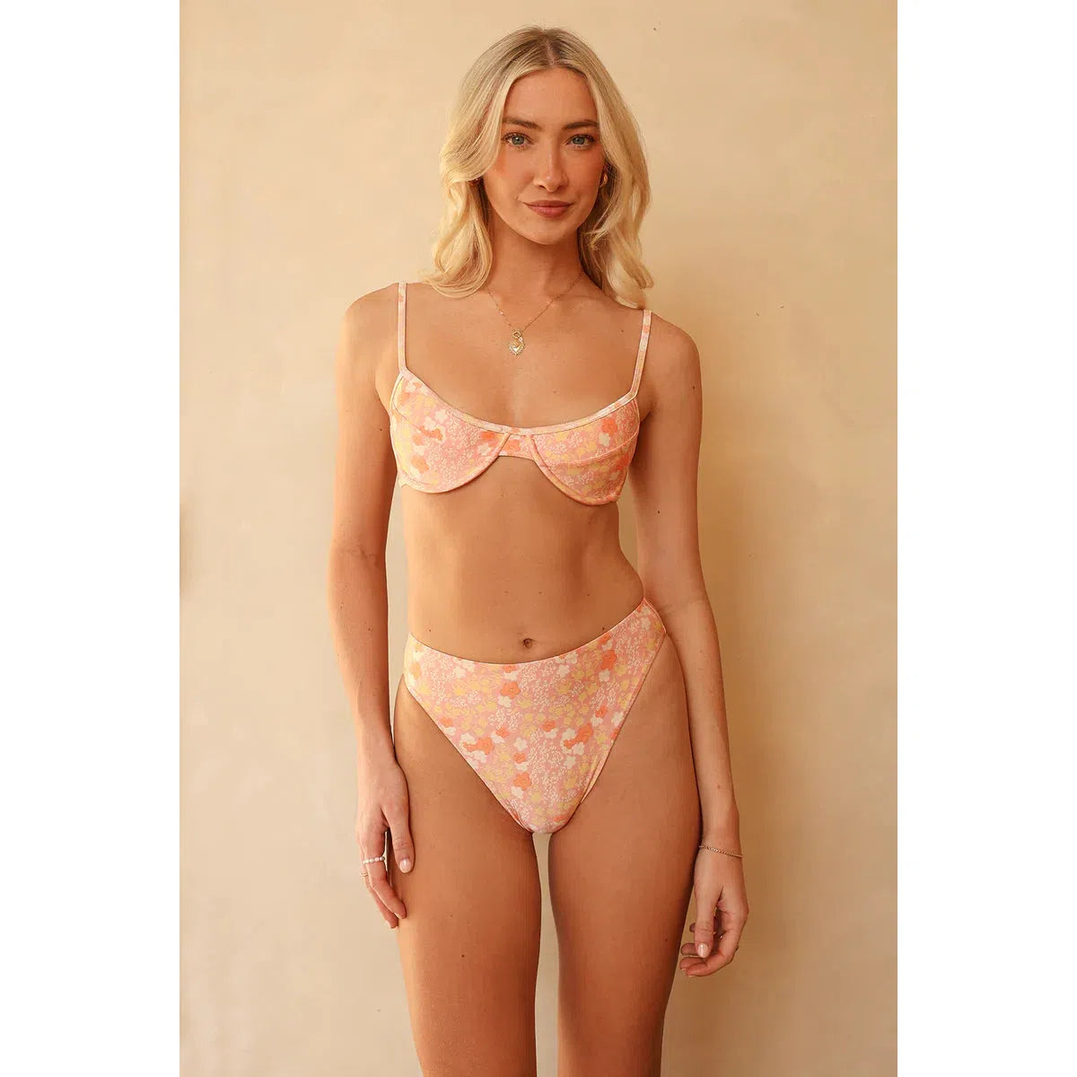 A supportive bustier-style bikini top with eye-catching seams on the bust.